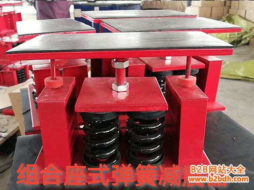 组合座式弹簧减震器结构简单,方便安装,有上下固定安装螺丝或螺孔,调节上下固定安装螺丝上的调节螺母,可调节减震器的安装高度。另外采用了侧向阻尼块,加大了垂向的阻尼系而且提高了纵向及横向刚度设备的正常运转。组合座式弹簧减震器是由多重组合弹簧组成、上下钢板及钢板外表粘贴阻尼橡胶垫组成。该产品为开敞式结构,具有灵活性大、稳定性好、固有频率低、减振等优点,安装时可直接安放在设备底下,若动力设备挠力较大,可先调节重心,并将减振器底座固定孔用螺栓固定地基。