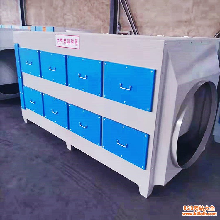 活性炭废气净化器用于净化被污染的废气,活性炭废气净化器主要构成有:机箱外壳、过滤段、风道设计、电机、电源、液晶显示屏等组成。当废气与具有大表面积的多孔性活性炭接触,废气中的污染物被吸附,使其与气体混合物分离,而起净化作用。只有硬度大、强度高、孔隙为微孔的活性炭才用作为活性炭废气净化器。
